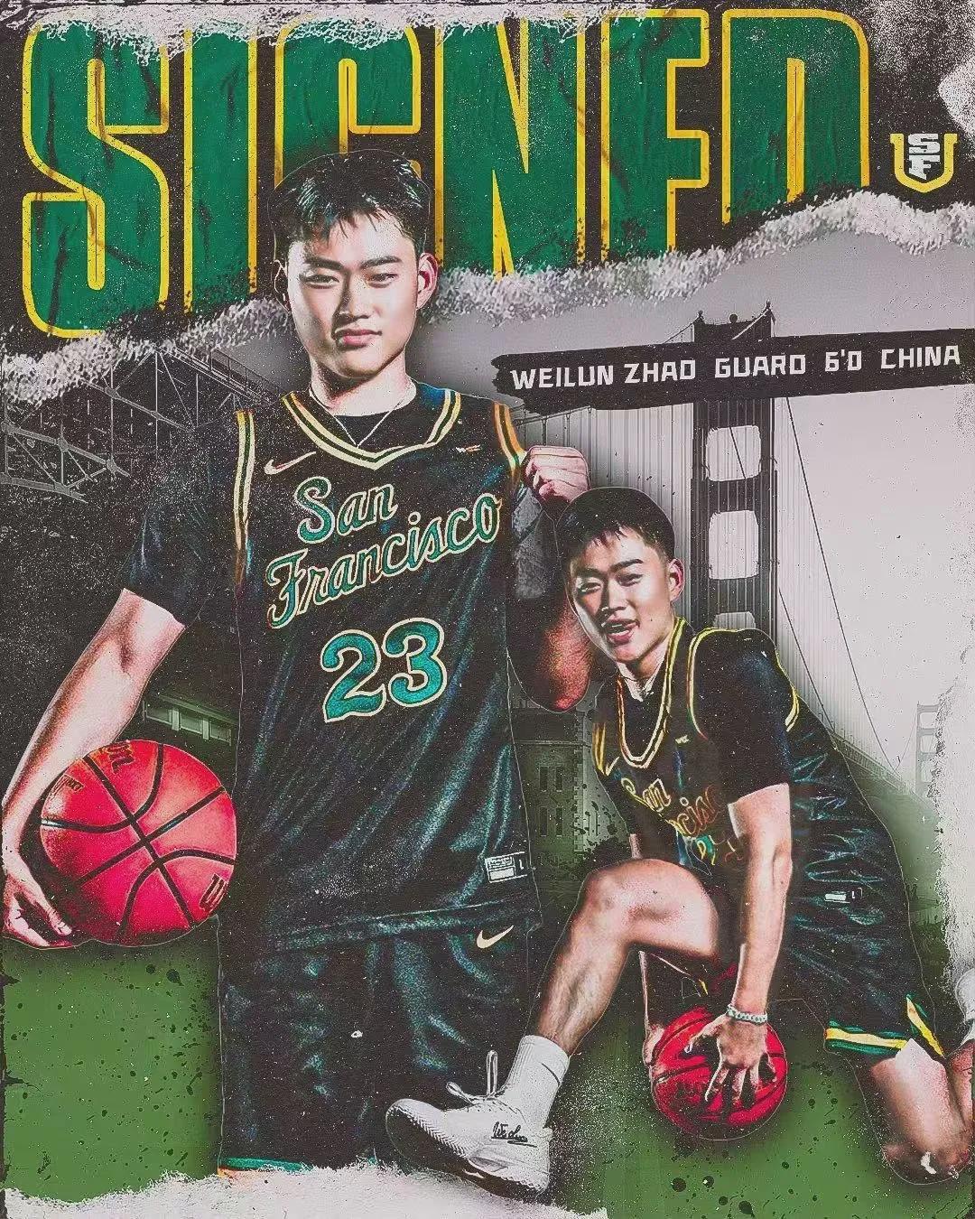 就此,新赛季的NCAA会有三名大家耳熟能详的中国超级新星同时征战,除了林葳,还有全部效力于旧金山大学的王俊杰和赵维伦。