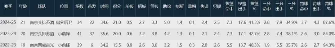 相比王俊杰和赵维伦,林葳拥有成熟的职业比赛经验并且已经在CBA证明自我,上赛季常规赛场均21分3.3板5助1.4断,三项命中率41.3%、34.9%和87.6%,带领同曦男篮队史首次杀进季后赛;季后赛则是场均狂轰30.5分6.5板11助1.5断,三项命中率43.5%、26.5%和94.1%。