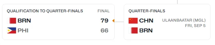 虎扑09月04日讯 在刚刚结束的一场U16男篮亚洲杯12进8附加赛,巴林男篮79-66击败菲律宾男篮挺进八强,他们将与中国男篮在1/4决赛上相遇。